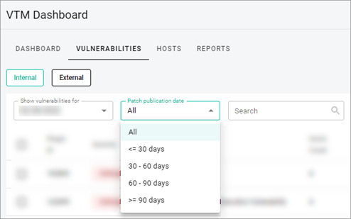 The Patch publication date is a date when a vendor published a patch for a vulnerability. On the Vulnerabilities tab, you can select the needed patch publication date. Depending on the selected patch publication date, the data in the Vulnerabilities table will change.